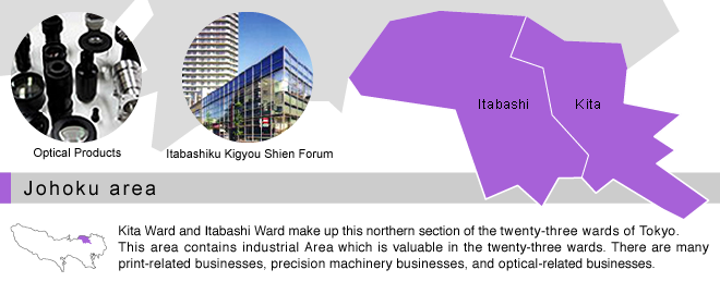 Kita Ward is the birthplace of Japan’s modern industry, and was a thriving site for spinning and paper manufacture-related companies. Now, it gathers companies related to clothing, paper products, and printing.