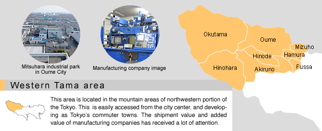 Manufacturers specializing in cutting-edge technologies are gathered in Hamura City and Mizuho Town along Route 16. Mizuho Town has 204 business establishments, and in terms of value added, it ranks fifth in the Tokyo metropolis.