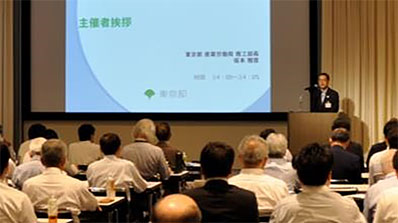 東京都産業労働局の坂本雅彦商工部長は、「昨今はITの発達で、場所を問わずにビジネスができる環境が広がりつつあるが、その一方で、顔の見える距離で顧客の要望にきめ細やかに対応した製品を短期間で納品してほしいという顧客のニーズも高まっている。ぜひ都内で立地し継続して商売してほしい。今日の講演をヒントにしてほしい」と挨拶しました。
