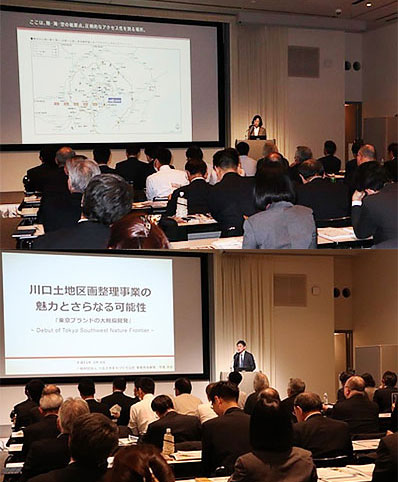 一般財団法人八王子市まちづくり公社は、首都圏中央道連絡自動車道(圏央道)の八王子西インターチェンジ付近で約30ヘクタールの産業用地を整備する「川口土地区画整理事業(組合施行)」を紹介しました。八王子市まちづくり公社の守屋清志事業担当参事は、「この産業用地の特徴は、都心部・主要都市へのアクセスの良さや事業継続計画(BCP)との好相性、労働力の確保のしやすさなど。2021年度には都の産業交流拠点も八王子駅の近くに完成予定であり、展示会などで企業間交流がさらに活発になる」と語りました。